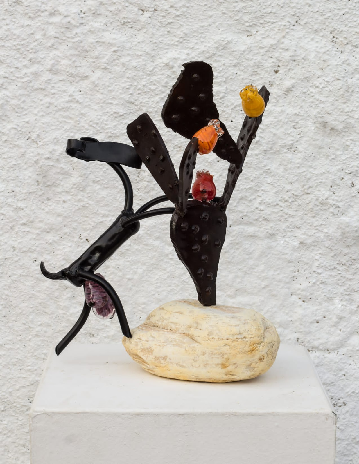 Cabra y palera de hierro y cuerpo de vidrio.. Tamaño: 35cm
