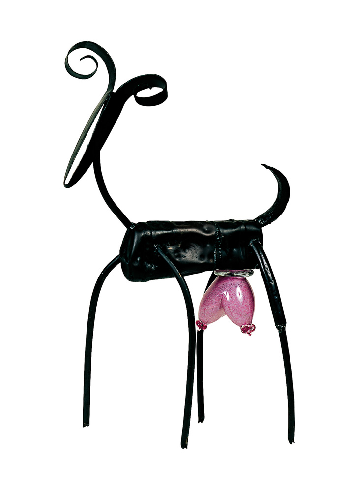 Cabra realizada con cuerpo de hierro y ubres de vidrio soplado. Tamaño: 50x60cm