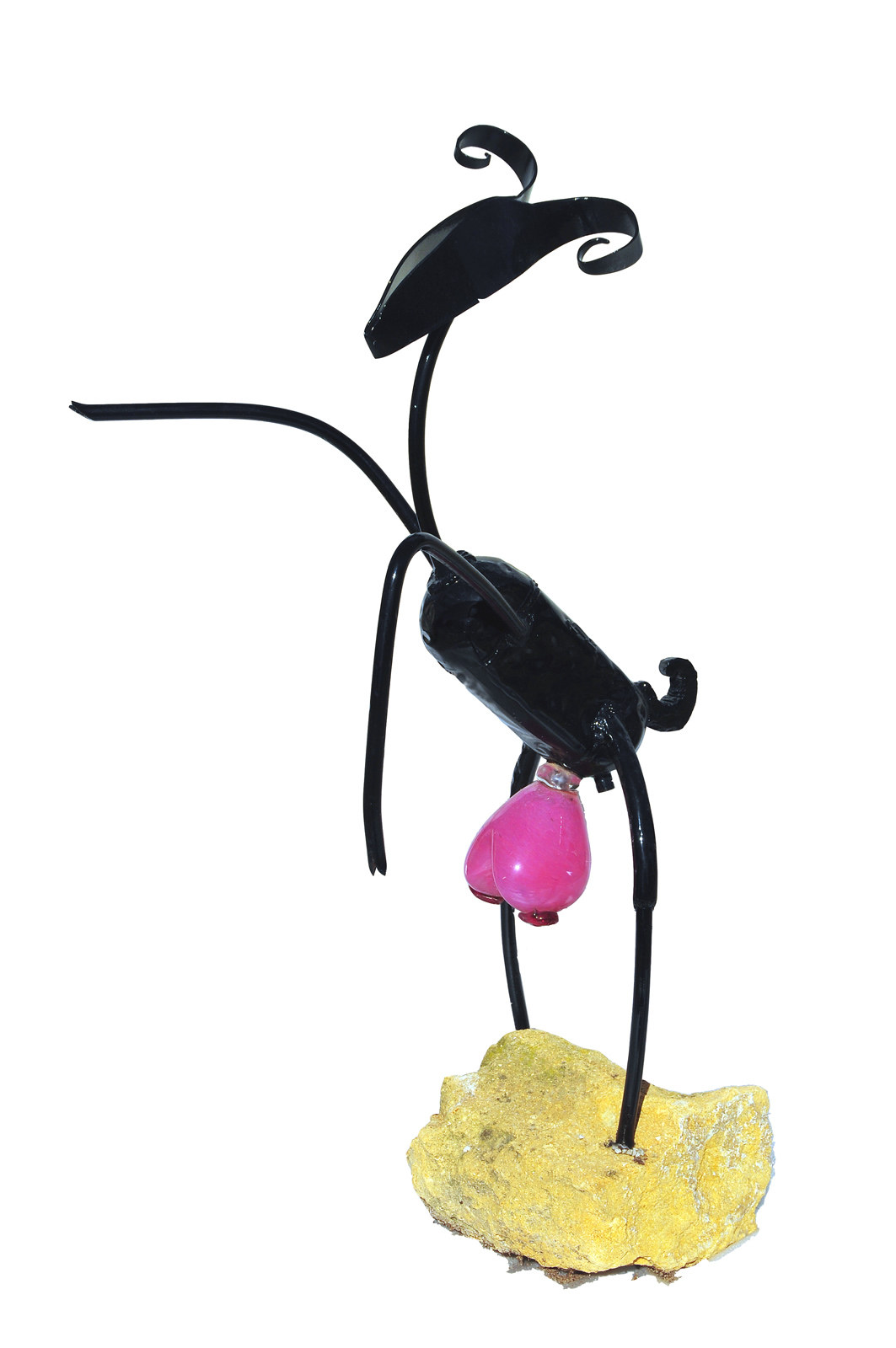 Cabra de hierro y cuerpo de vidrio.. Tamaño: 60x55cm.