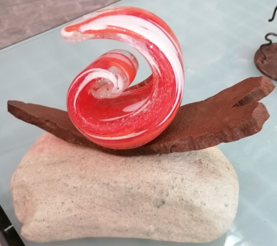 Caracoles de hierro y cuerpo de vidrio.. Tamaño: 25X20
