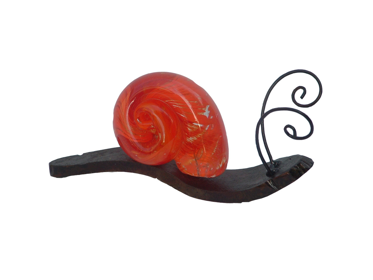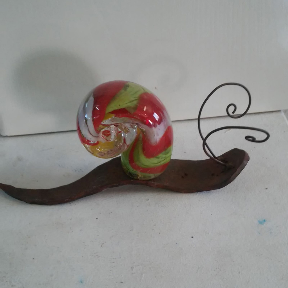 Caracoles de hierro y cuerpo de vidrio soplado. Tamaño: 20x20cm