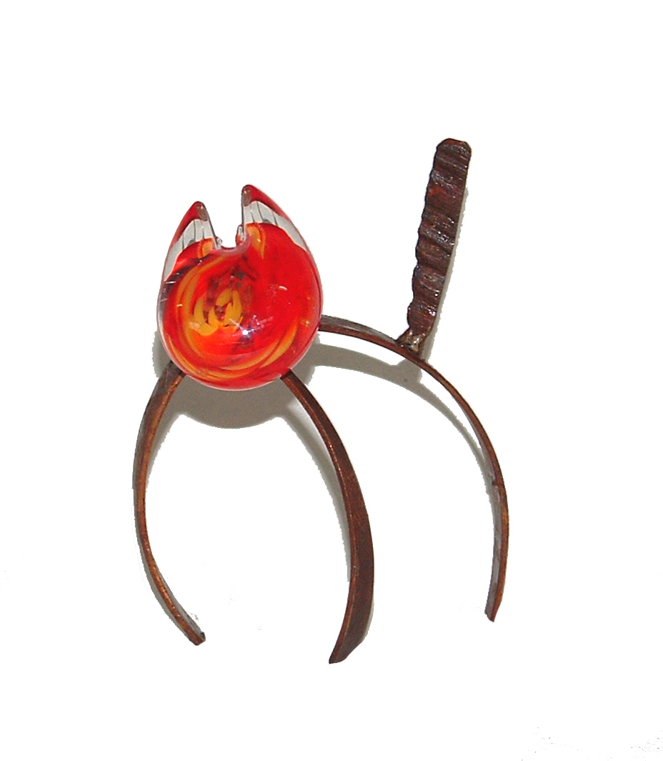 Gato de hierro y vidrio. Sujeta cortinas. De varios juegos de color. 10×15 cm