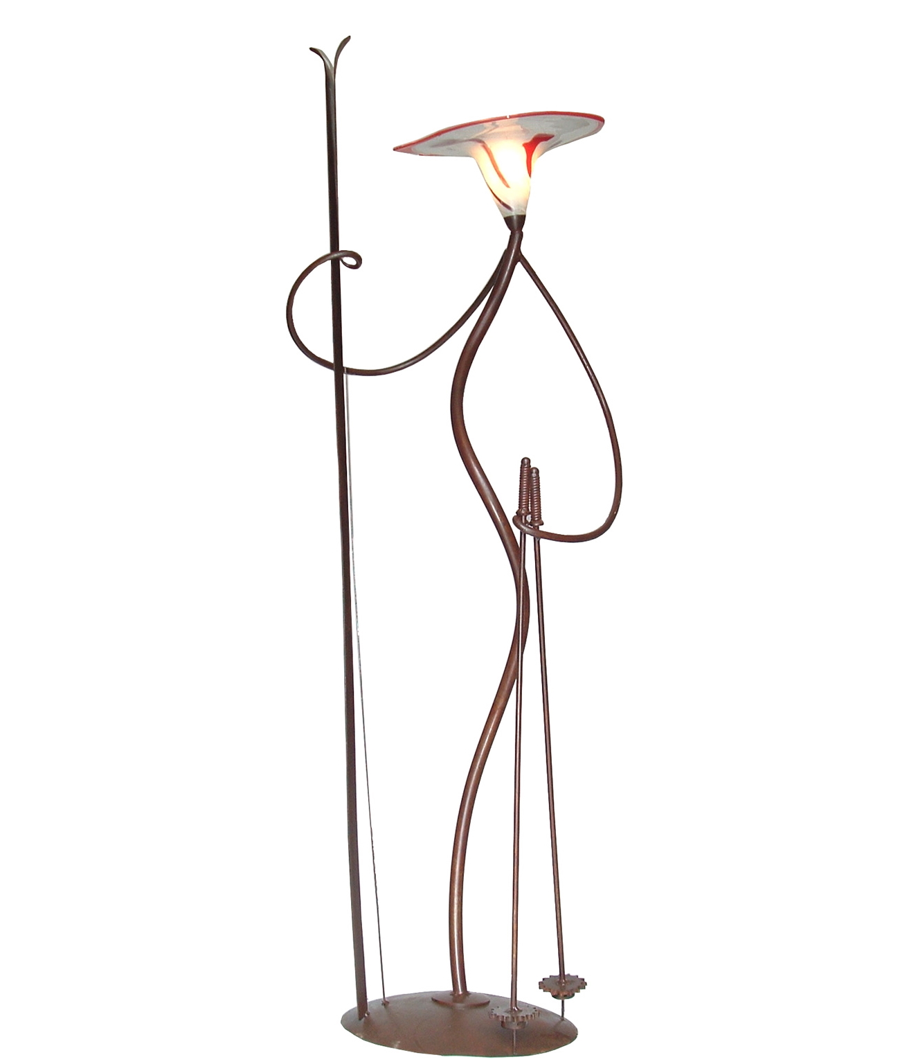 Realizado con vidrio soplado. Una tulipa y soporte de hierro con forma de esquiador.