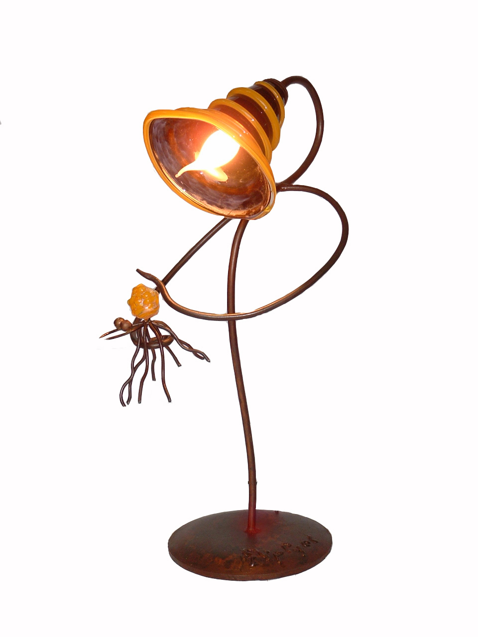 Lámparas sobre mesa. Vidrio soplado y hierro.
