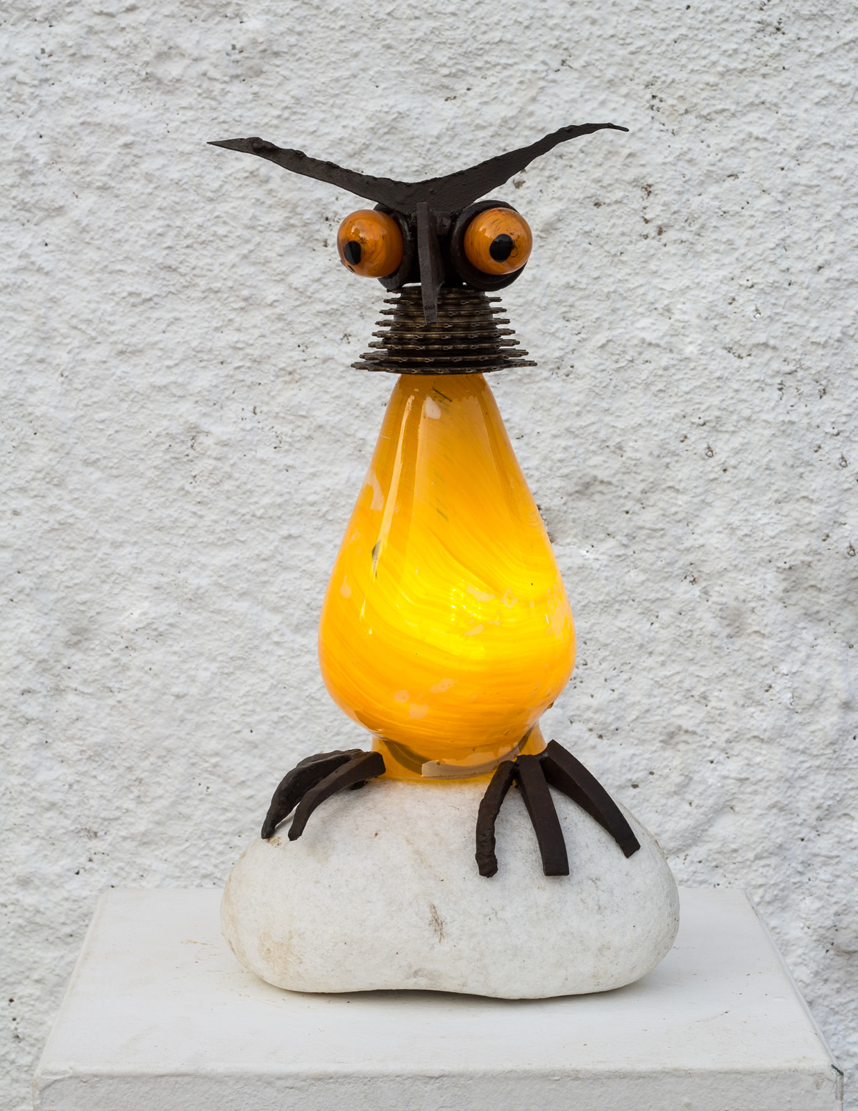 Lámparas sobre mesa. Vidrio soplado y hierro. 50x30cm aproximadamente.