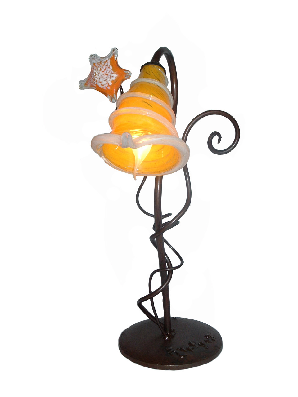 Lámparas sobre mesa. Vidrio soplado y hierro.