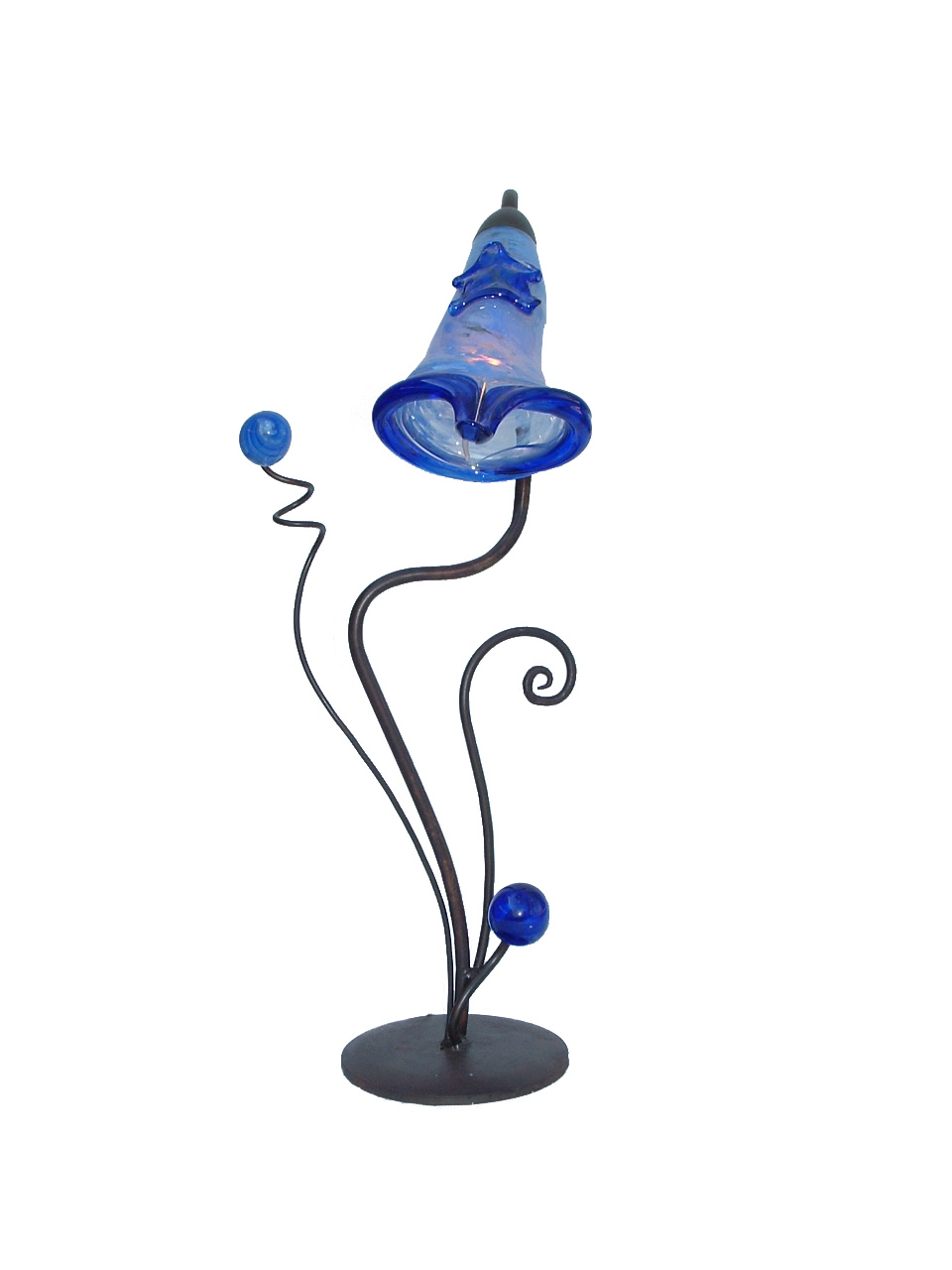 Lámparas sobre mesa. Vidrio soplado y hierro.