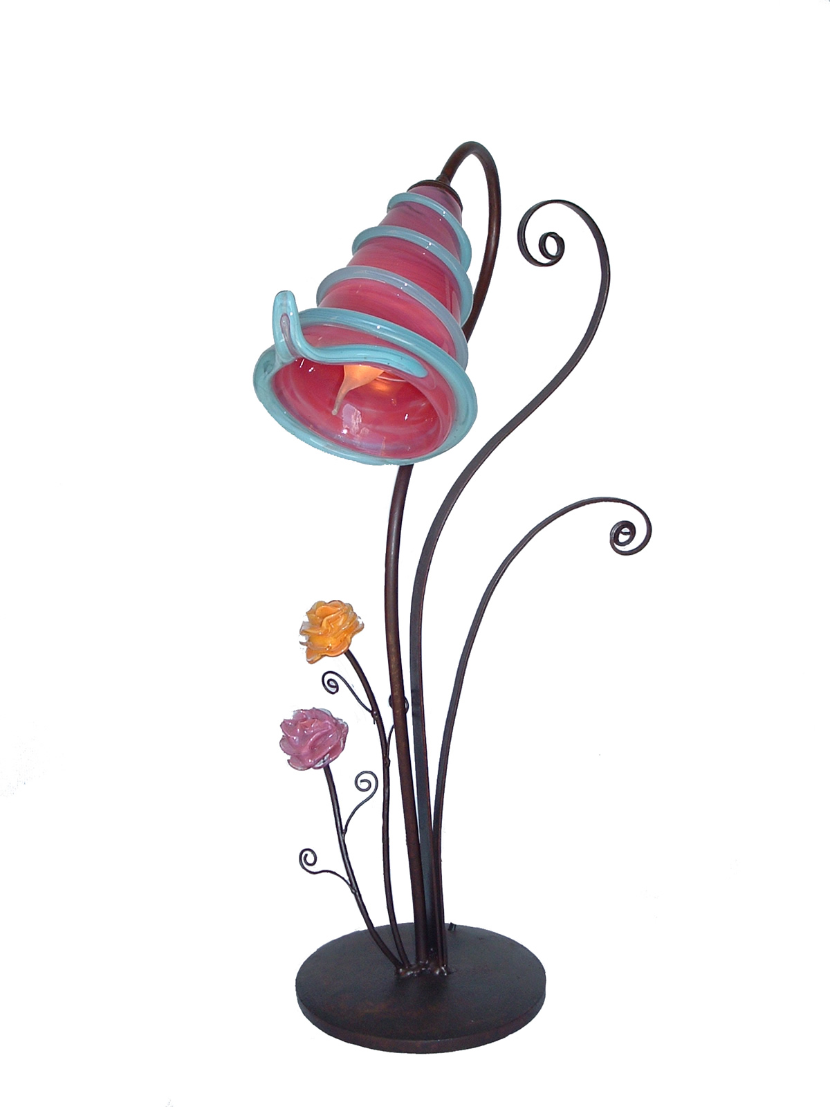 Lámparas sobre mesa. Vidrio soplado y hierro.