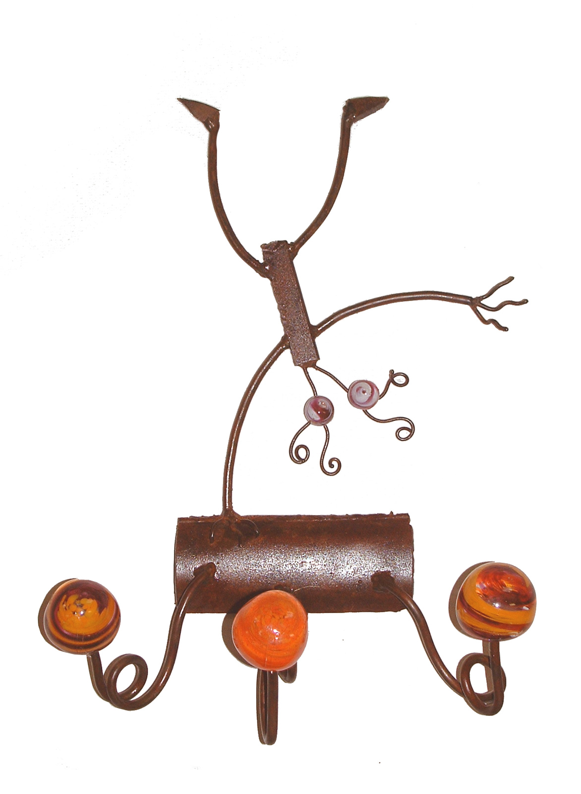 Perchero de pared. Hierro y vidrio soplado.