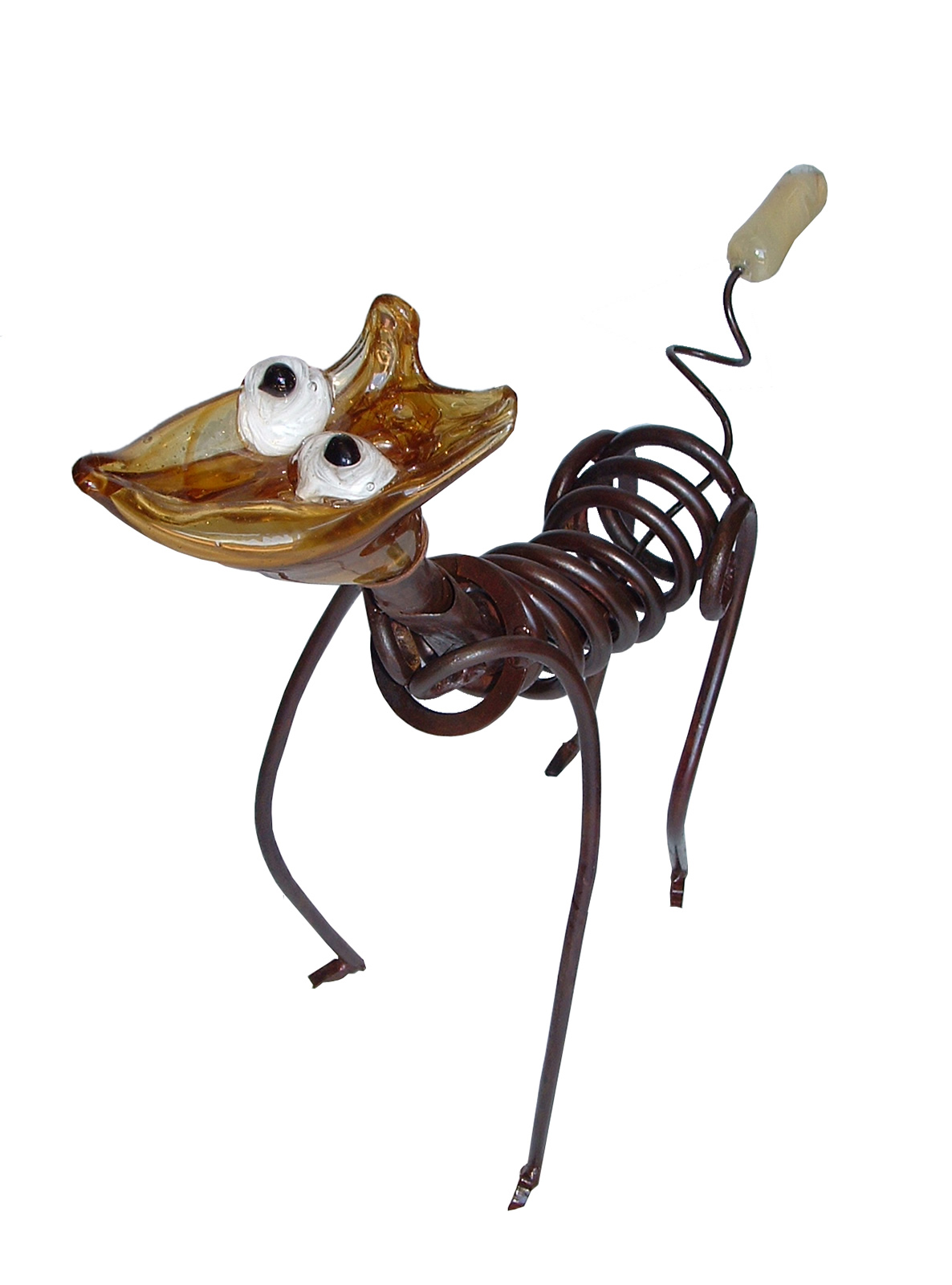 Perro Rantamplán de hierro y cuerpo de vidrio.. Tamaño: 60x55cm.